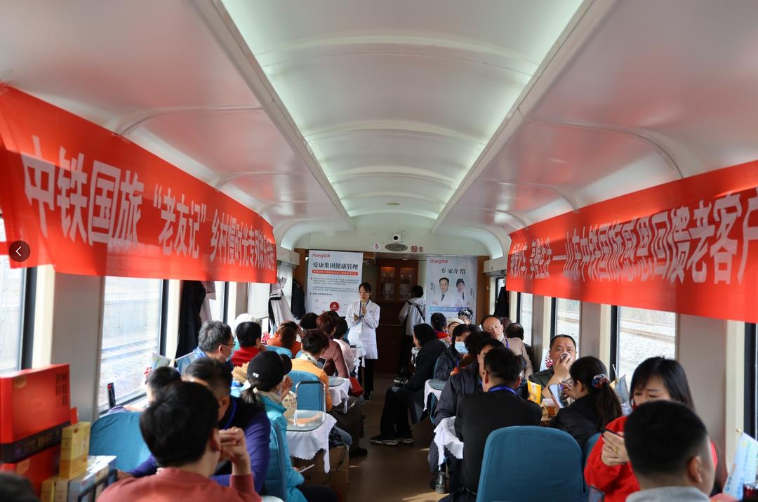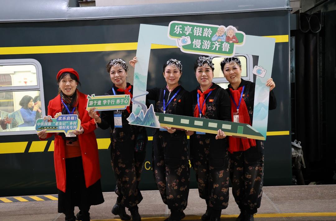 11月23日,山东中铁外洋旅行社有限公司和谐铁路老年大学、济南市老年大学,并联袂百大哥字号“宏济堂”及爱康集团济南公司专为老客户打造的银发慢火车专列Y521/0次从济南站渐渐驶出。这趟以“乘慢火车·享乡村慢时光”为主题的旅程,300余名老年搭客在慢悠悠的绿皮火车上,穿越百年铁路历史、再见乡村烽火集市、共赴文化盛宴,在慢节律中找回久违的简略感与温柔追到。